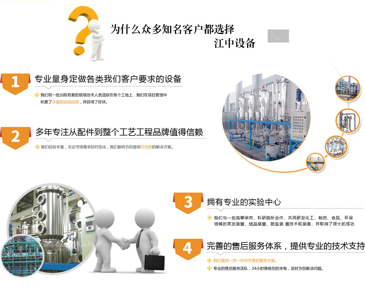 江陰市江中設備制造有限公司是一家專業(yè)從事蒸發(fā)、濃縮、提取、污水處理等設備的廠家。廣泛應用于制藥、化工、食品、農(nóng)副產(chǎn)品深加 冶金、電子等多個領域。產(chǎn)品遍及全國三十余個省、市、區(qū),并遠銷歐美及東南亞一些國家和地區(qū)。公司實力雄厚,匯聚了一批高層次、高素質(zhì) 的專業(yè)人才,一直致力于產(chǎn)品的開發(fā)、生產(chǎn)和管理,并十分注重科技創(chuàng)新,所生產(chǎn)的設備受到用戶的青睞。